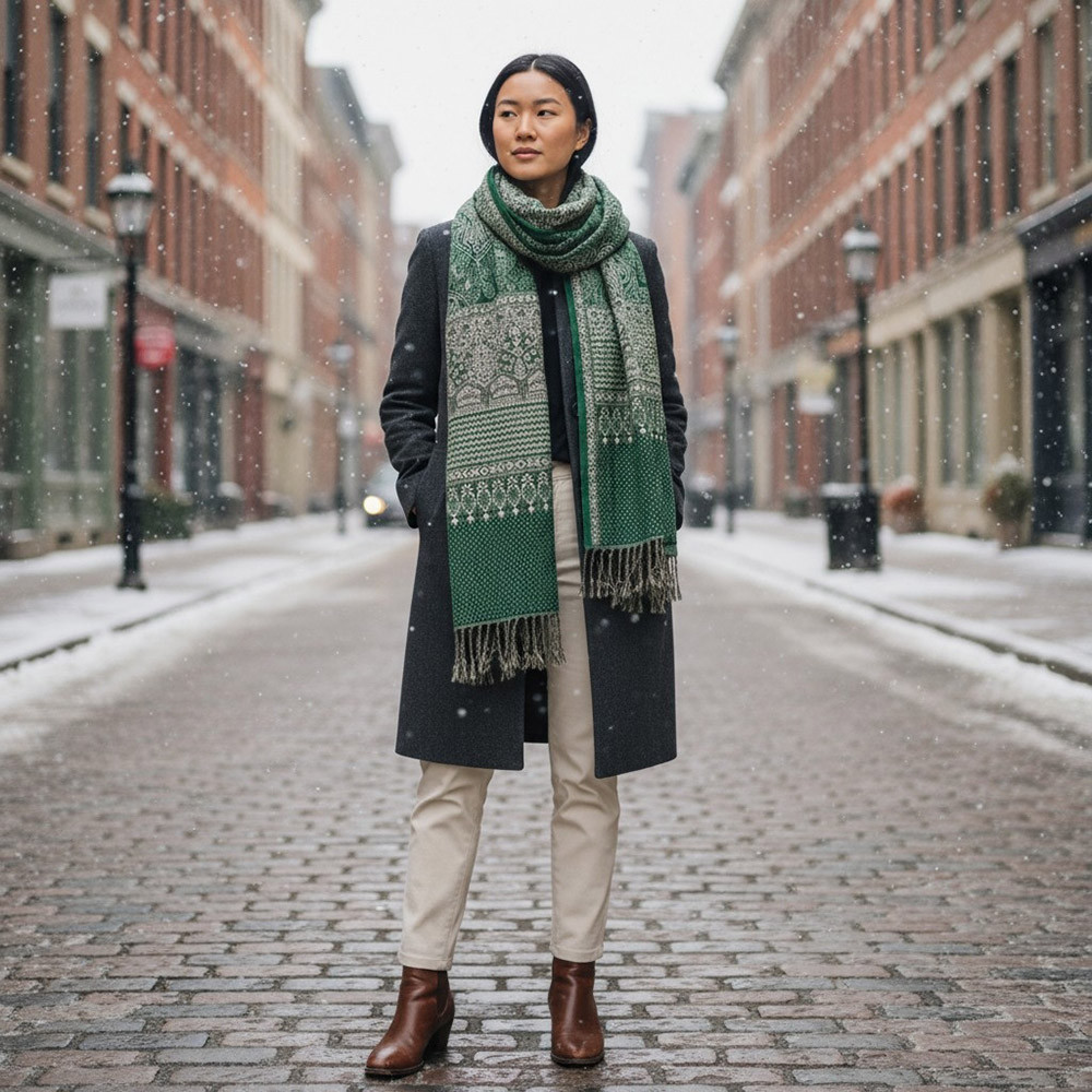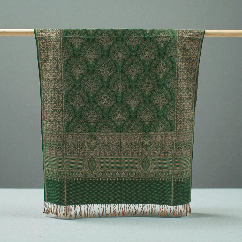 Écharpe à motif oriental 215x105 vert châle en coton