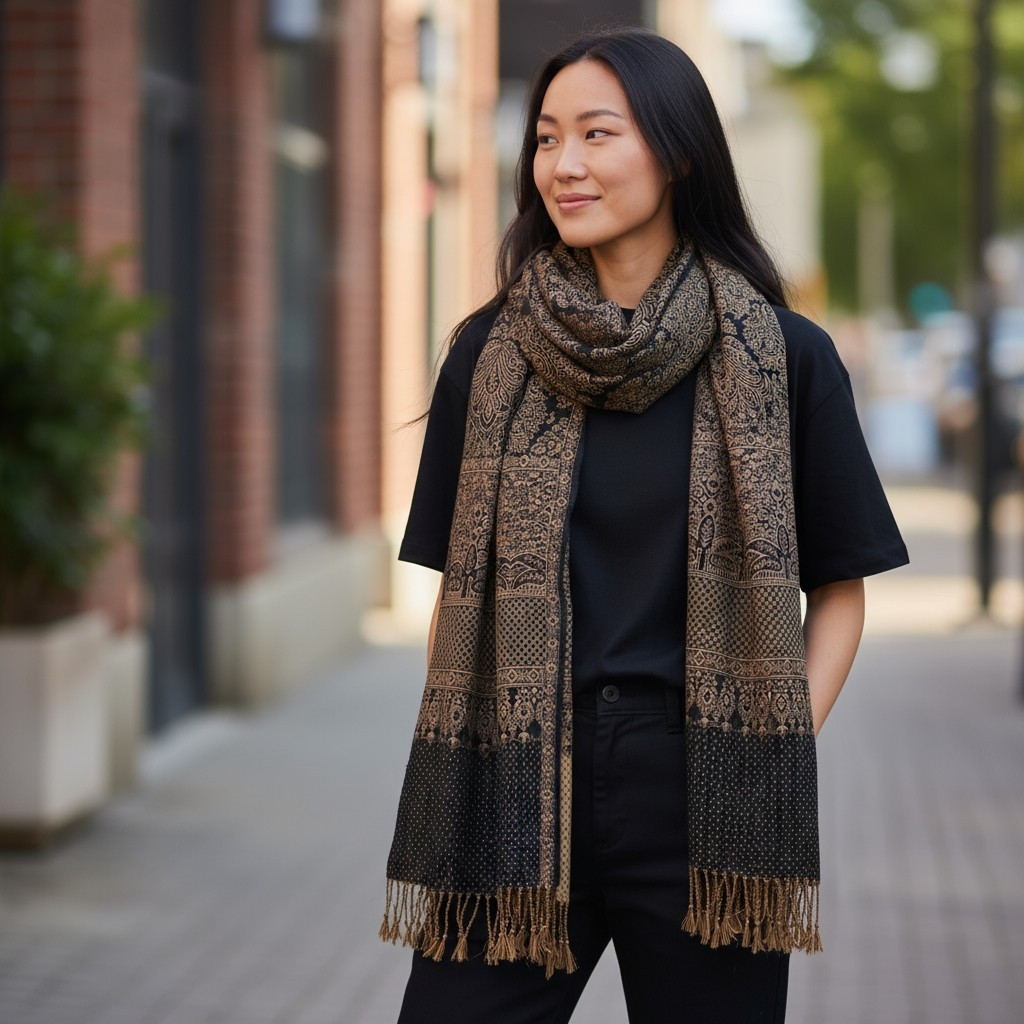 Grande écharpe 215x105 grande écharpe femme marron-bleu