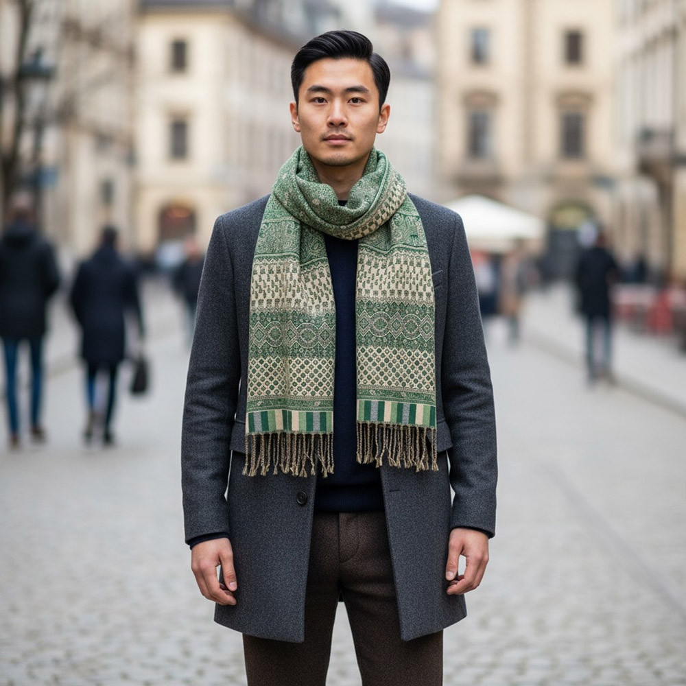 Grande écharpe verte 215x105 grand châle pour femme et homme